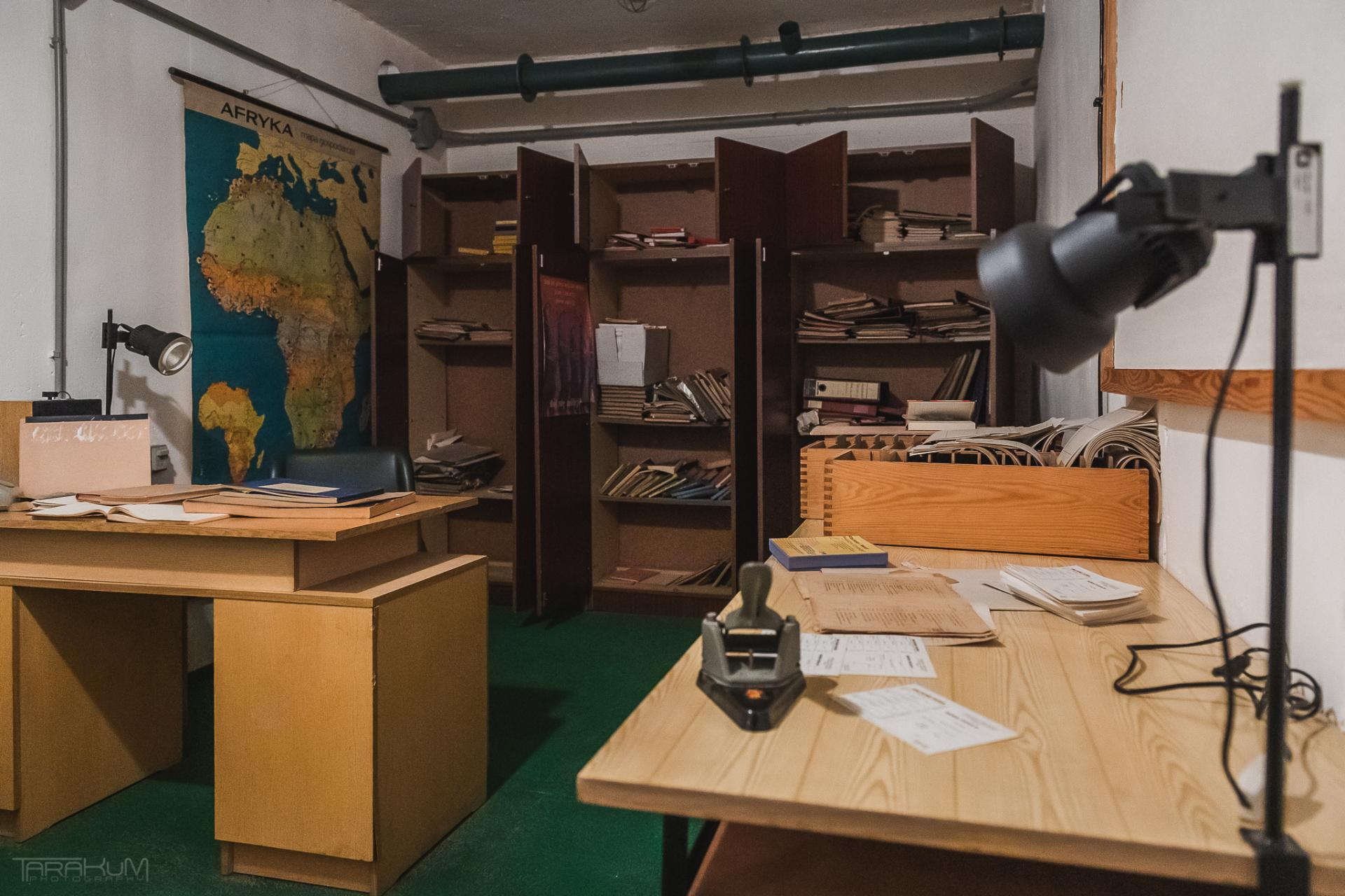Na jednym z biurek można zobaczyć m.in. porzucony "Wieczór Wybrzeża" z 1992 r. W gabinecie medycznym znajdują się nosze, medyczne sprzęty, przenośna lampa i biurko. Sypialnia wyposażona jest w piętrowe prycze, przykryte kołdrami, a na ścianach wiszą odbiorniki radiowęzła. Najgorzej wygląda łazienka z zardzewiałym sanitariatem.