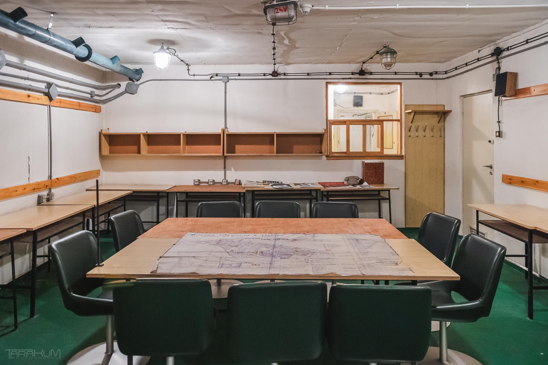 Bunkier podzielony jest na trzy strefy: odpoczynku, pracy i techniczną.