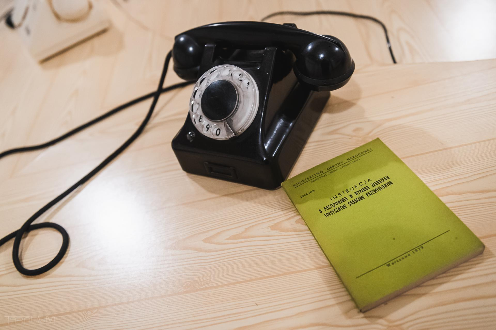 - Są one rozmieszczone w taki sposób, żeby nikt nikomu nie przeszkadzał - mówi Szafrański. - To prawdziwy skansen historii. Tutaj mamy księgę sprzętu, tutaj wiszą spis inwentarza i instrukcje awaryjne. Znajdujemy się w pomieszczeniu kierowania ochrony cywilnej z salą konferencyjną. Telefony były połączone zapewne m.in. z linią pierwszego sekretarza.