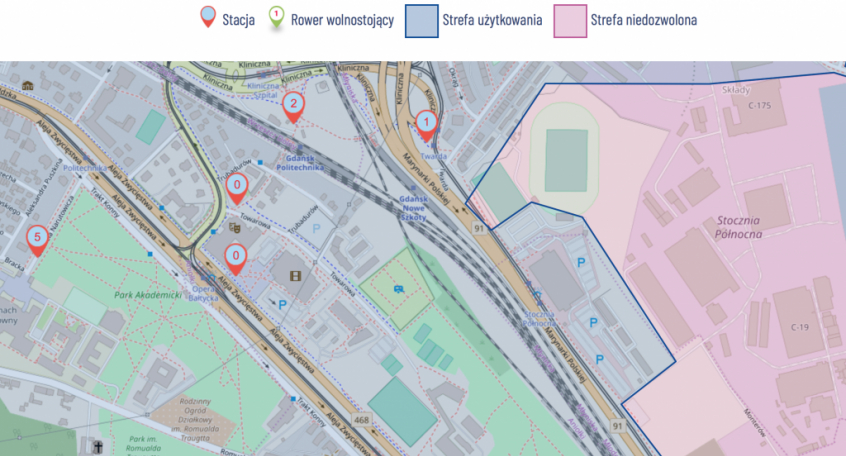 Aktualny układ stref i mapę stacji roweru Mevo można zobaczyć na mapie: https://rowermevo.pl/mapa-stacji/